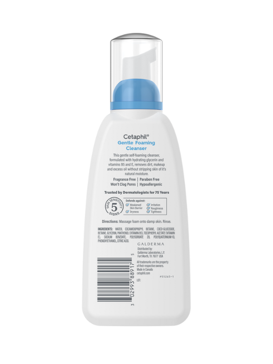 - A gentle, self-foaming facial cleanser that gently removes dirt, oil and makeup without drying to maintain skin's natural moisture balance.