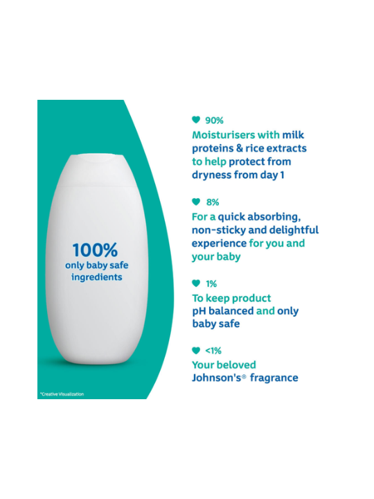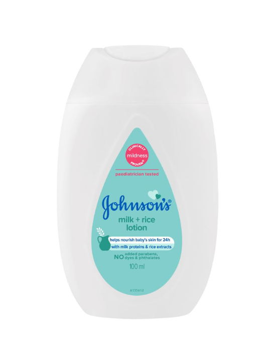 Buy Johnson's baby milk+rice lotion 100ml online from Cellsii.com. Johnson's baby milk lotion contains a rich combination of milk proteins plus essential vitamins to help complete skin nourishment. By nourishing skin, it leaves it softer, smoother and healthier after the very first use.