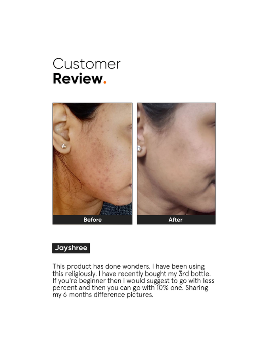 - 10% Niacinamide (Vitamin B3) – Reduces acne scars, brightens skin & improves texture.